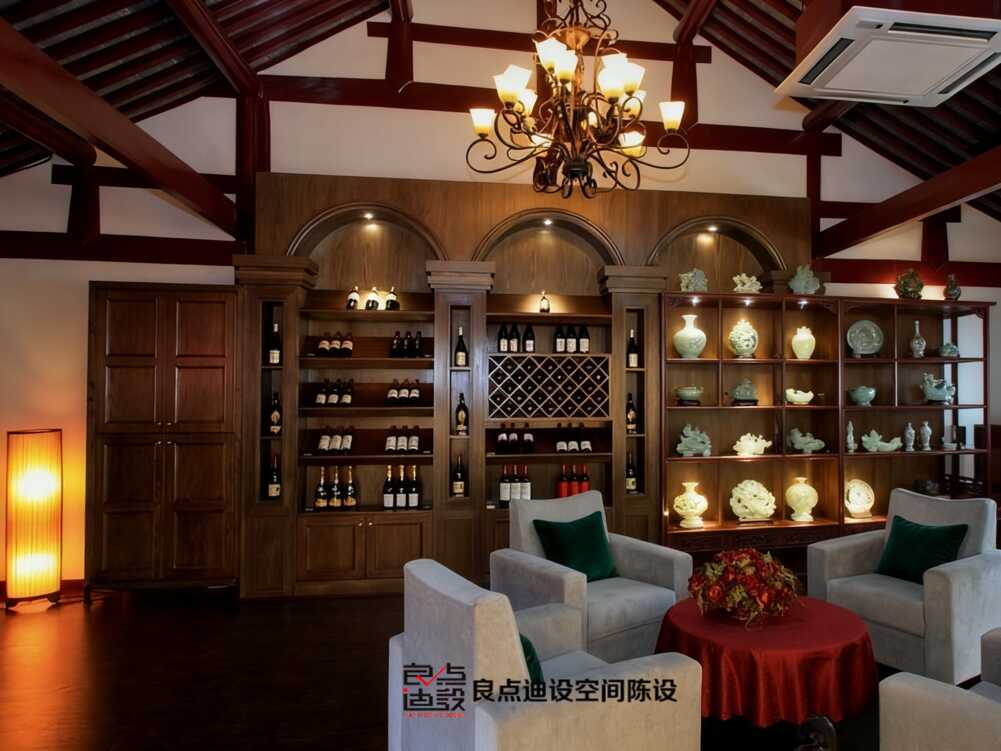瞅瞅這張大紅沙發(fā)!絲絨質(zhì)感絕了,金色鑲邊提升精致度。對(duì)面酒柜設(shè)計(jì)太巧妙,傳統(tǒng)茶室居然和現(xiàn)代酒吧元素混搭成功。玻璃柜門(mén)透出收藏好酒,聚會(huì)氛圍直接拉滿(mǎn)。