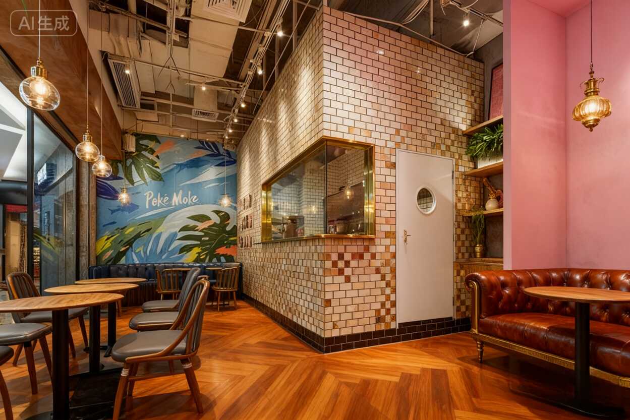 寶子們!今天挖到這家工業風波奇餐廳,裝修真的絕絕子!水泥墻+白瓷磚的搭配意外地高級,粉色海報上那句"Poke Makes My Day Everyday"簡直寫到打工人心坎里了~