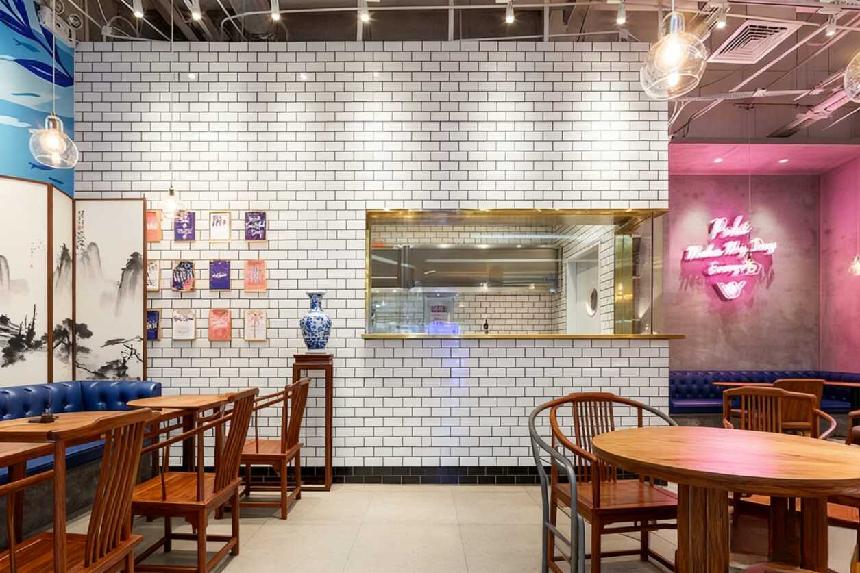 炸裂!這套餐廳軟裝設計用多彩卡片+藍白風,秒變網紅打卡地!