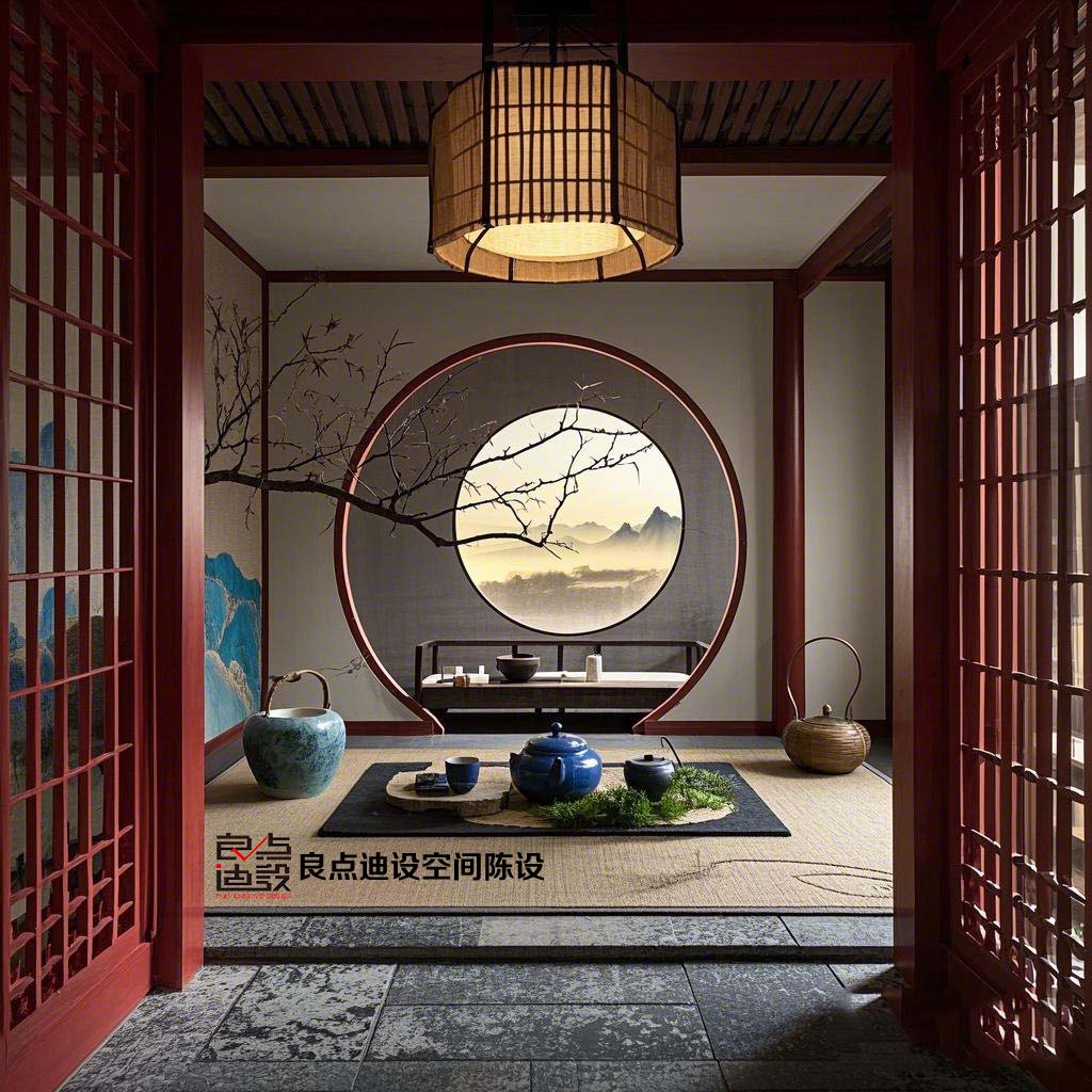 4.配備茶具、茶葉、花瓶、書籍等元素