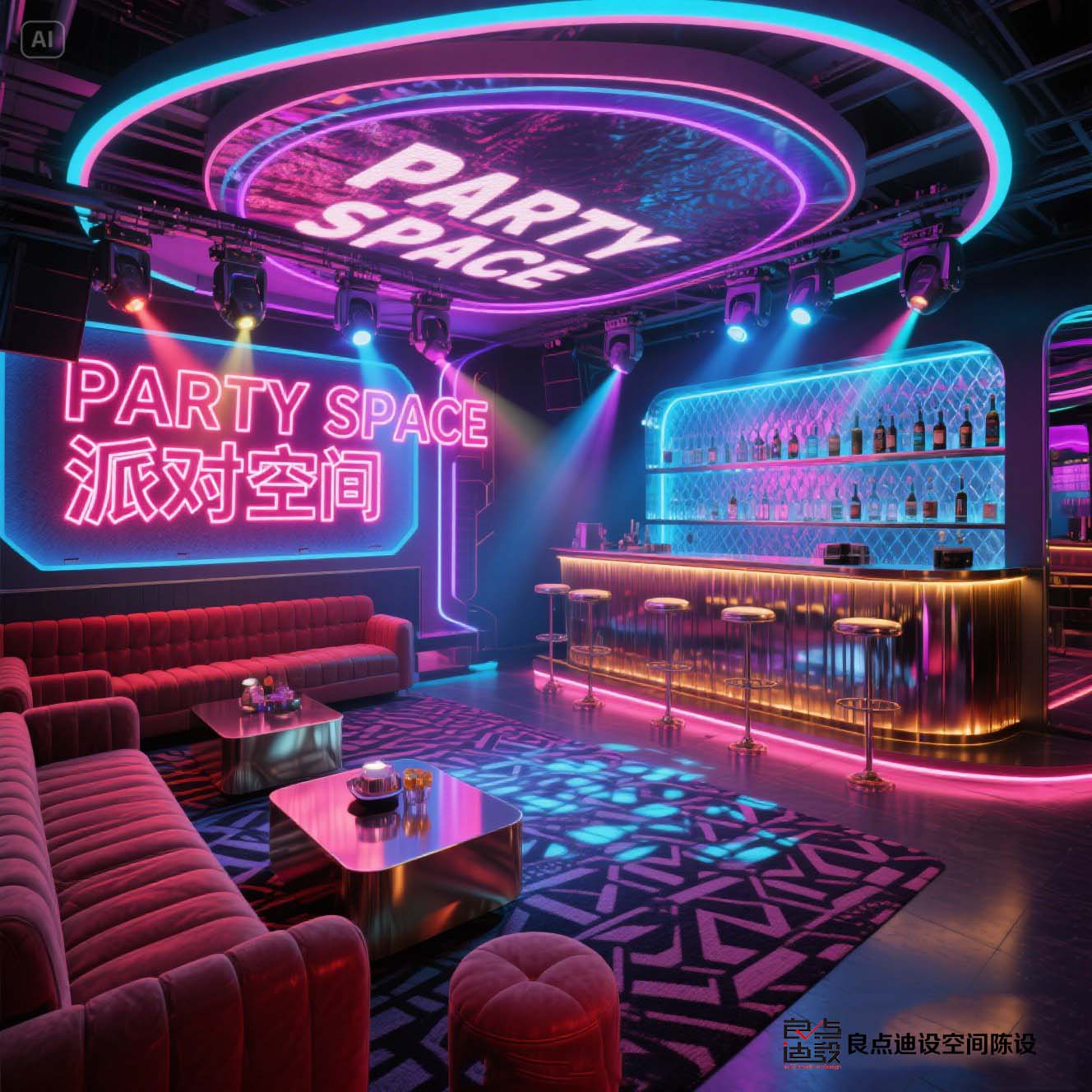 寶子們!今天帶你們?cè)乒?**近爆火的AI SPACE派對(duì)屋設(shè)計(jì)現(xiàn)場(chǎng),這波賽博朋克風(fēng)裝修直接封神!進(jìn)門就被"PARTY SPACE"霓虹燈牌暴擊,中英文雙buff疊加,未來感從***眼就開始燃炸??