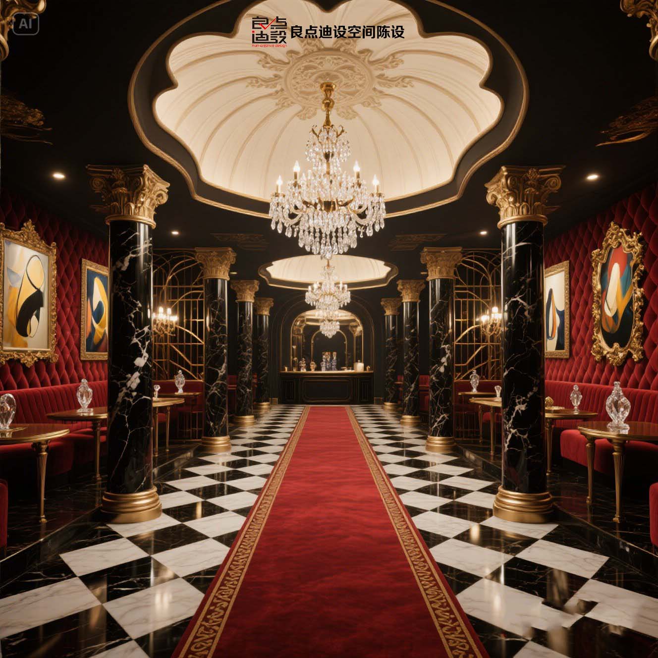 酒吧軟裝教科書!黑金穹頂+紅絲絨沙發裝修軟裝設計直接封神