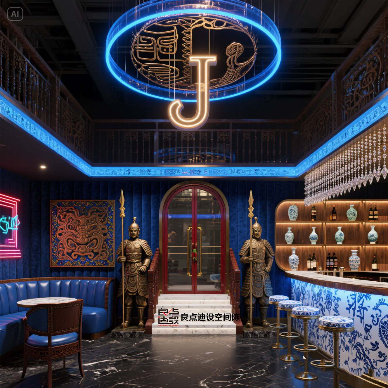 夜店酒吧裝修軟裝設計!藍色海洋遇上賽博霓虹