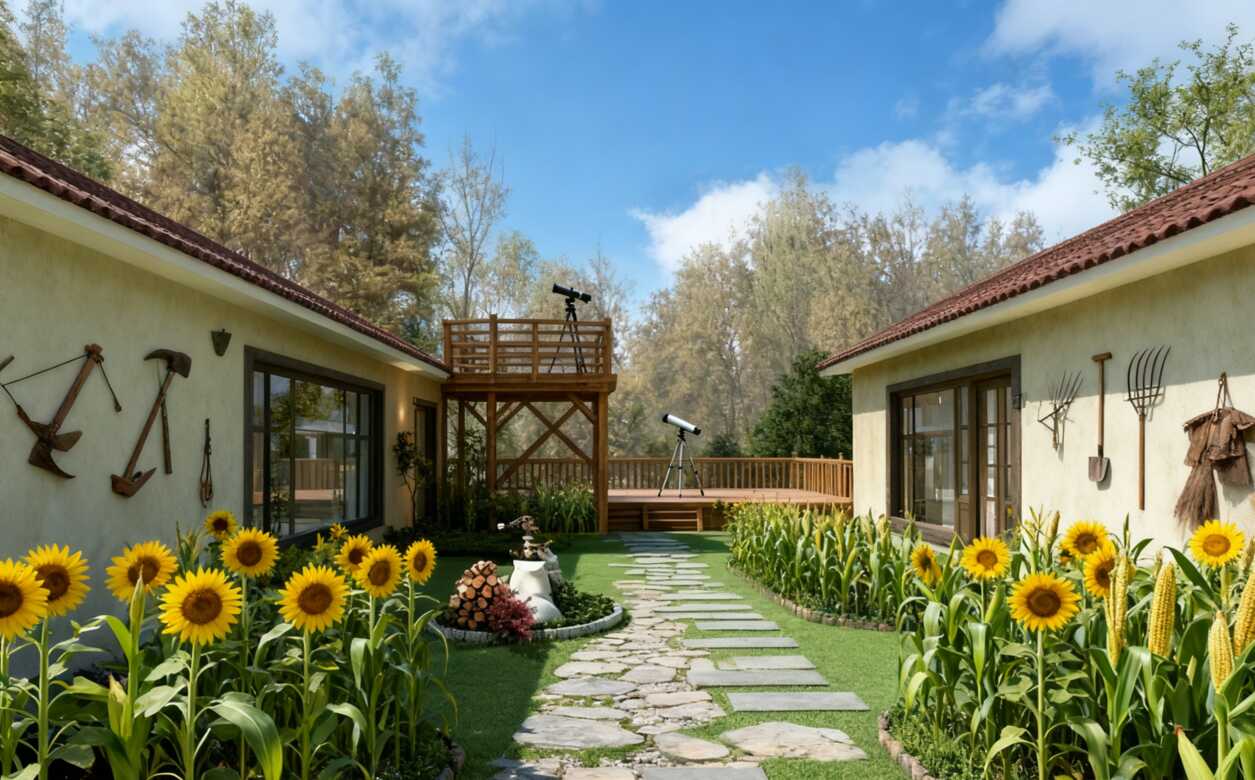 把 “田園夢” 搬進現實!這家民宿庭院軟裝設計絕了,向日葵 + 農具墻,打卡一次就想賴著不走