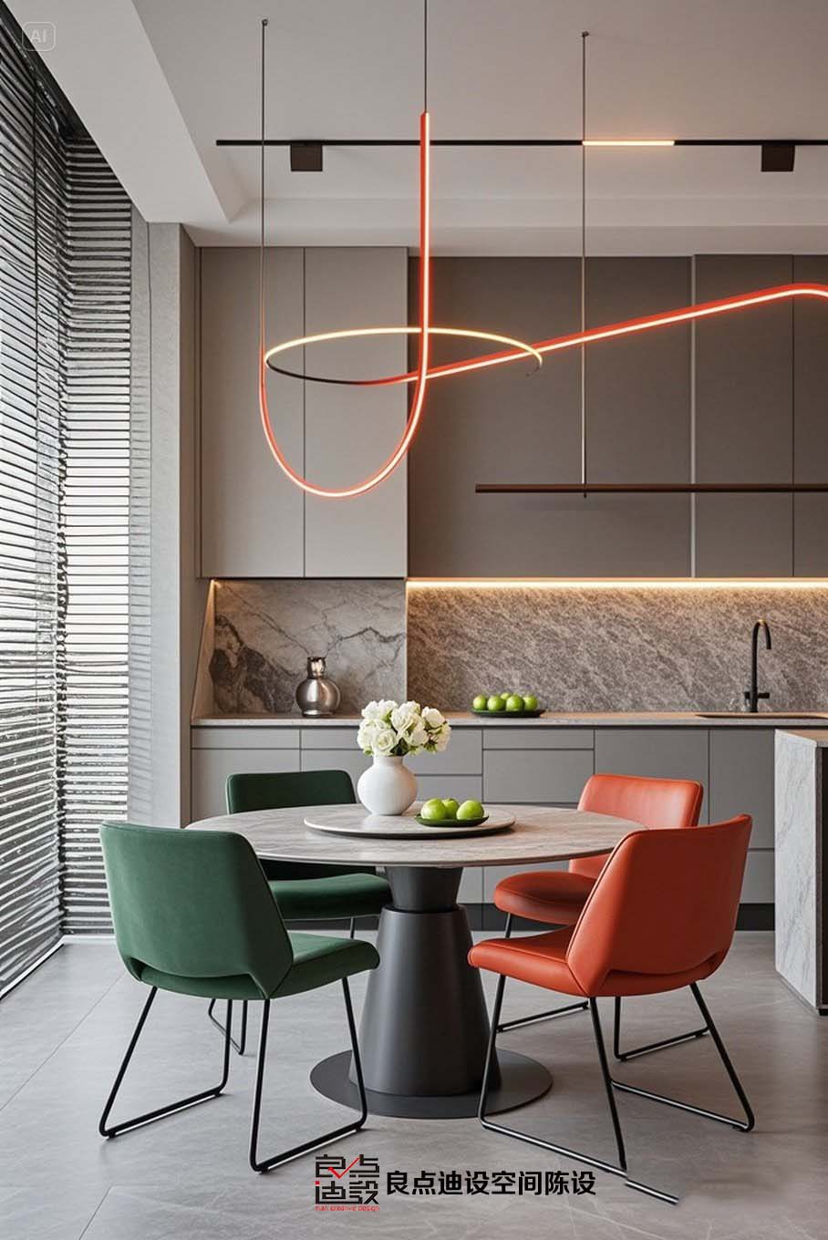但重點來了!頭頂那個紅色條狀燈帶!線條賊流暢,紅得賊正點!不開燈是藝術品,開了燈就是氛圍感核武器!在家吃泡面都吃出米其林感覺,誰懂啊???