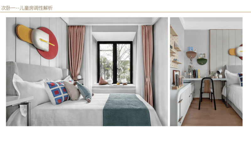 在色彩搭配上,使用 鮮艷明快的色彩 ,不僅可以使兒童保持活潑積極的心理狀態(tài)和愉悅的心境。而且還能改善室內(nèi)亮度,造成明朗親切的室內(nèi)環(huán)境,處在其中,孩子能產(chǎn)生安全感和歸屬感。