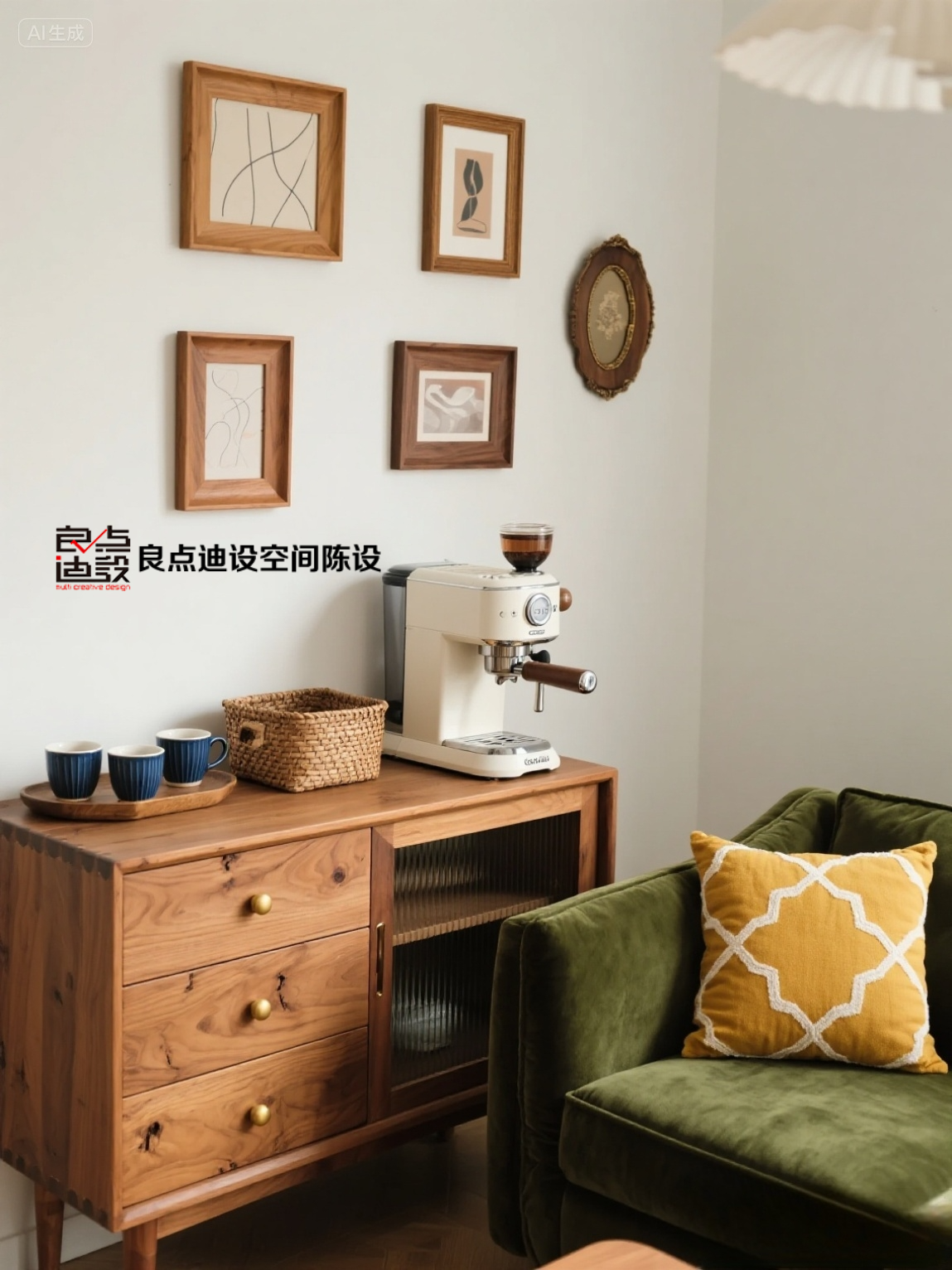 95㎡治愈系小家,原木風軟裝設計+綠絨沙發,咖啡角一擺全屋都香了!?